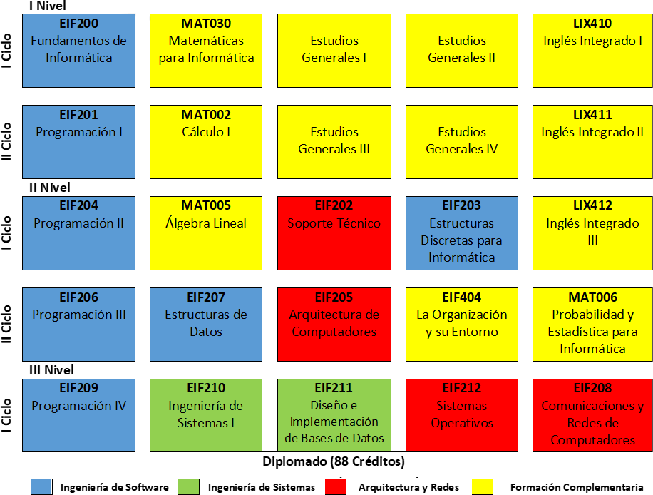 A continuación, se brinda la posibilidad de obtener el plan de estudios completo de la carrera de Ingenieria en Sistemas de Información con Grado de Bachillerato y Salida Lateral de Diplomado en Programación de Aplicaciones Informáticas, este contempla entre otros el código, nombre de curso, créditos y requisitos.