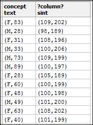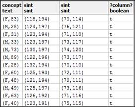 donde la segunda columna es de tipo objeto intervalo simbólico